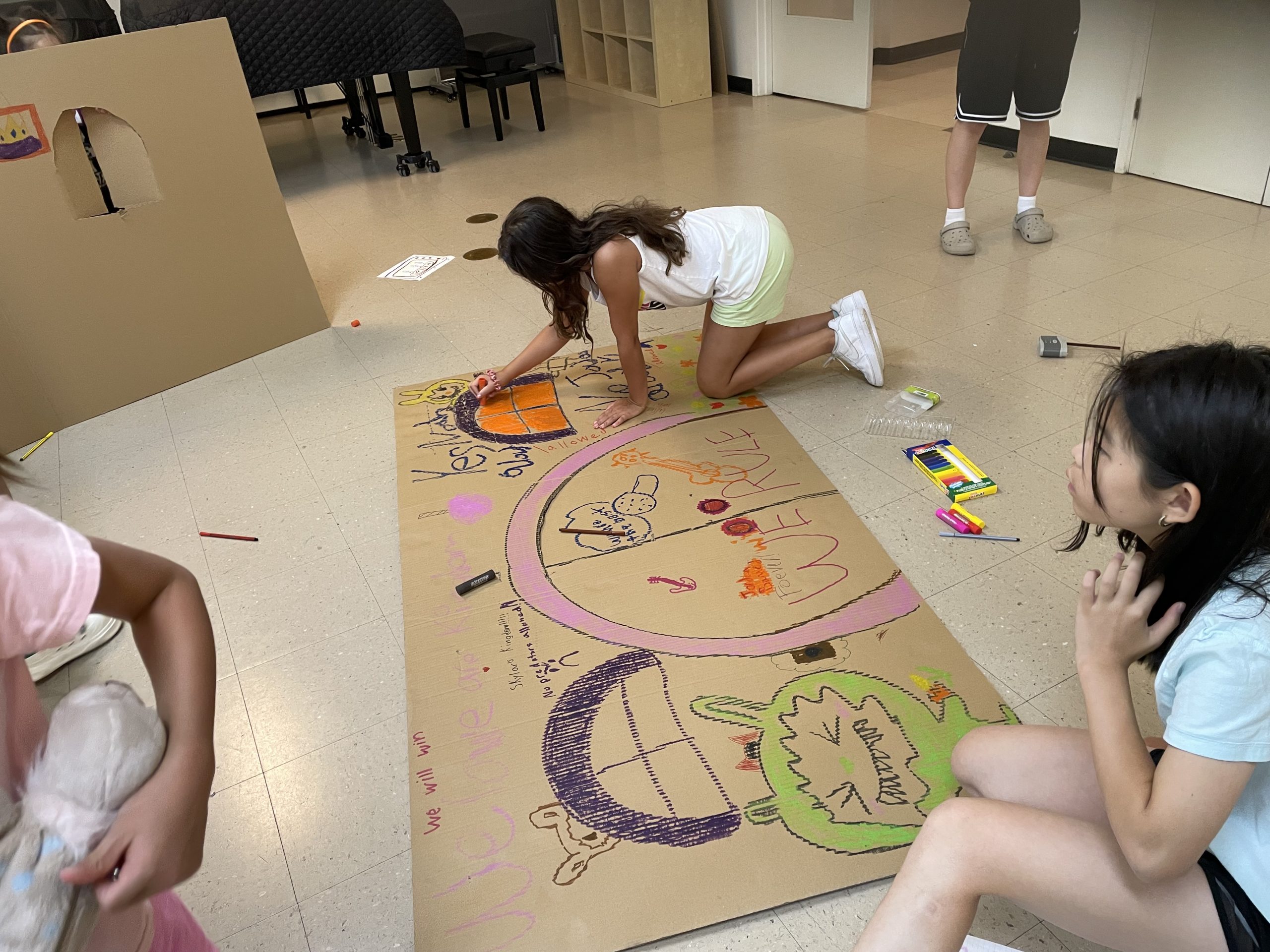 To keep the camp running smoothly, we ask parents to wait until our special open house or performance days to visit. This allows kids to fully immerse in the camp experience and have fun surprises to share! However, we welcome parents as volunteers. If you'd like to volunteer at our camp, please contact hello@artsonbayview.com